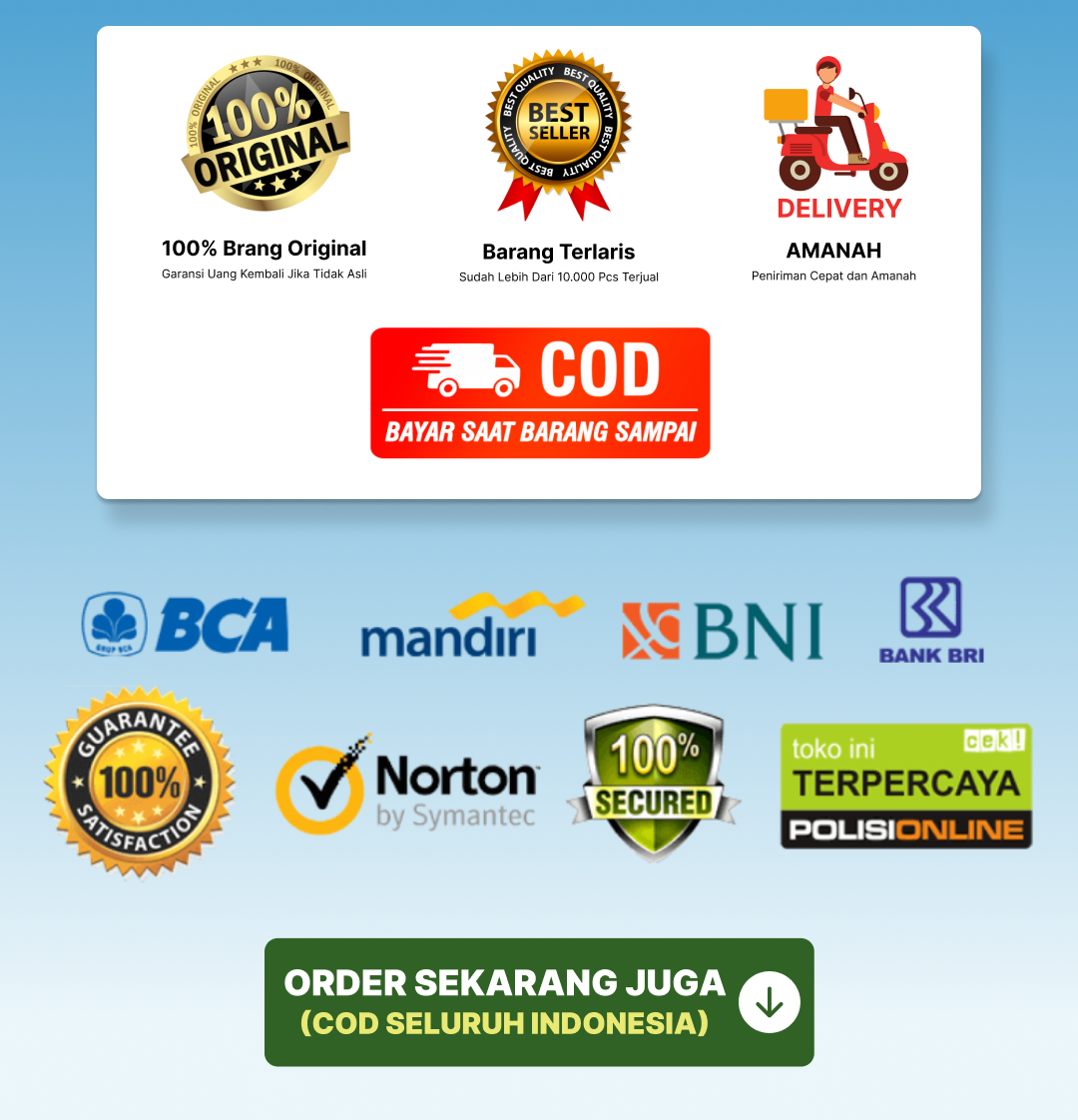 Ya, kami melayani pemesanan ke seluruh Indonesia dengan sistem COD (Bayar di Tempat) untuk memudahkan Anda.