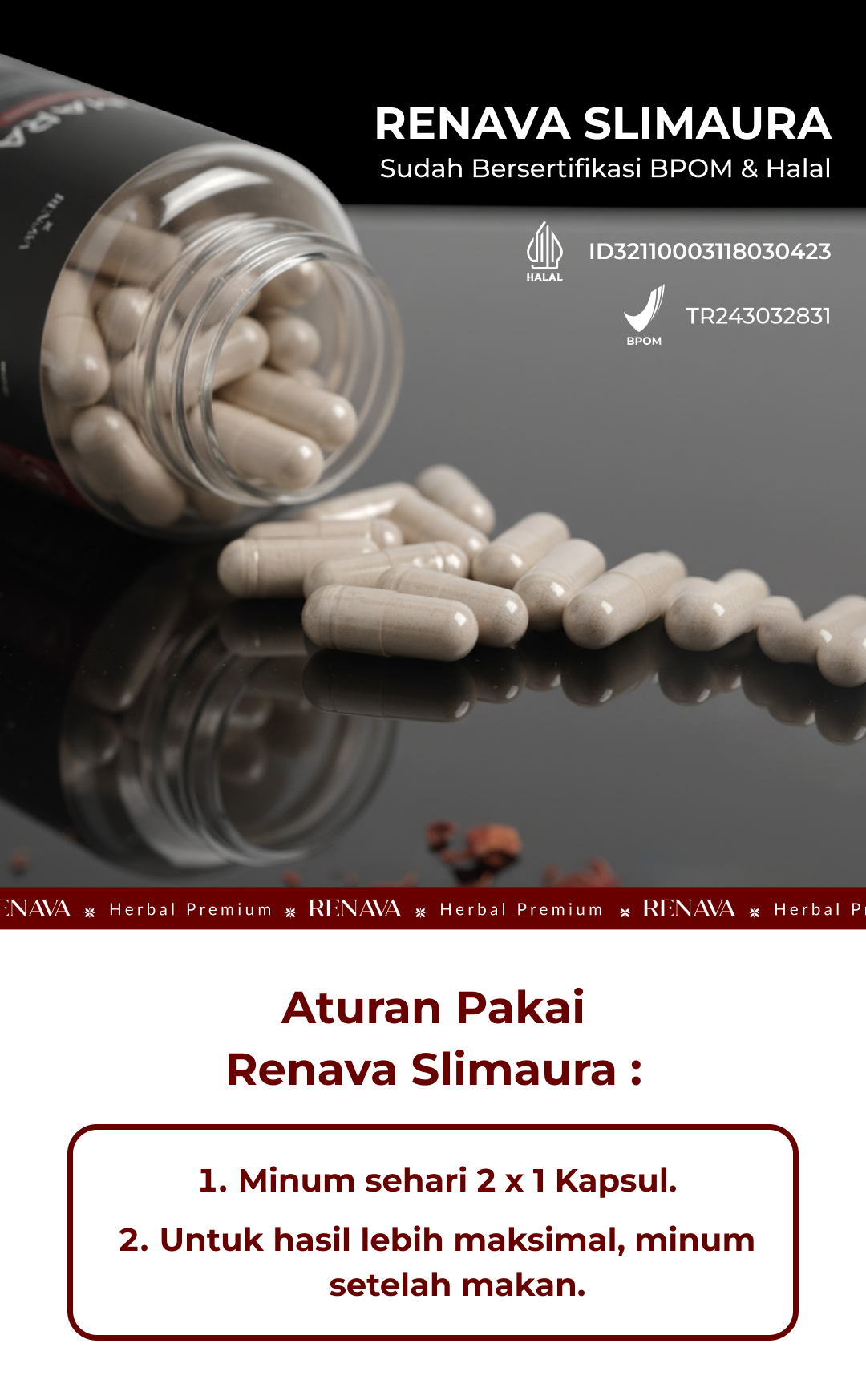 Ya, RENAVA Slimura sudah terdaftar di BPOM & Halal tentu aman dikonsumsi.