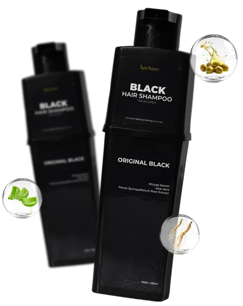 HAYHAAR Black Hair Shampoo adalah shampoo penghitam rambut 2-in-1 dengan sistem pump inovatif yang menutupi uban hanya dengan satu kali keramas — tanpa semir ribet, tanpa salon mahal. Formula uniknya menggabungkan Black Hair Shampoo dan Developer yang keluar bersamaan untuk hasil hitam merata, natural, dan tahan lama hingga 2–3 minggu.